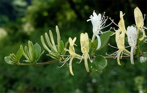 开放的花朵呈筒状,有淡香,外面有柔毛和腺毛,雄蕊和花柱均伸出花冠,花色初为白色,渐变为黄色,故名为金银花。