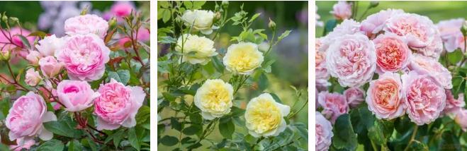 从左至右依次为:‘塞拉斯?马南’、‘乡村牧师’、‘游苔莎?斐伊’(图片来源于藤本月季网)