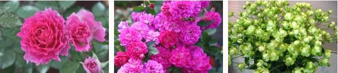 从左至右依次为:‘大游行’、‘龙沙宝石’、‘甜梦’(图片来源于https://www.tengbenyueji.com/questions/1901.html)