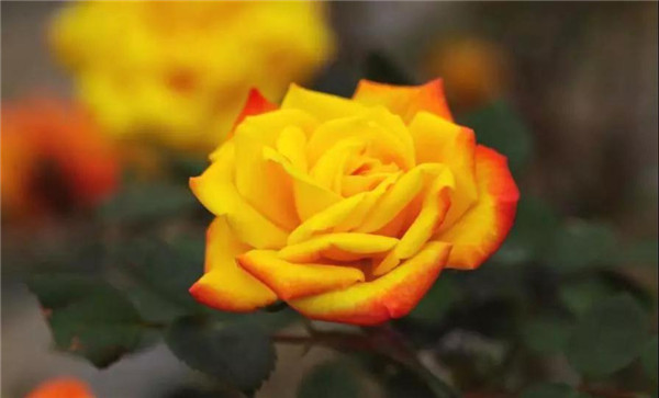 ‘火和平’原名也称为“古龙”。于1960年在爱尔兰推出。它也是属于杂交茶香月季一类,花朵正面红,背面黄,有淡淡的清香。多季节重复盛开,非常耐寒,但在北方会落叶。