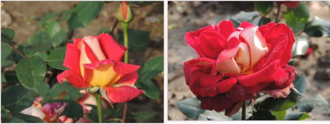 其香味浓郁,花色由白到红,逐天变化;初开时花瓣乳白色,仅在花瓣边缘有一轮红晕,随着花朵开放,其红色逐渐浸染、扩大。花开饱满时,其红色几乎覆盖全花,使整朵月季花变得更加娇艳、热烈,而花香也达到了最浓郁的时候! 花朵着色是大自然紫外线的天然色素在花瓣中的体现。因为天气原因,颜色也随之不断变化。这意味着,没有任何两个花朵的颜色是一样的。养一盆‘红双喜’一定觉得其乐无穷!
