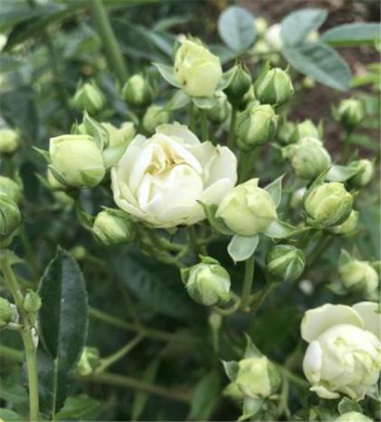 ‘白柯斯特’是典型的微型月季代表。花朵白色或奶白,一簇簇白色花朵,如同含苞待放的茉莉。但它的花径比茉莉大,约1.5―2厘米,花瓣坚实、密集,呈球状开放,没有香味。