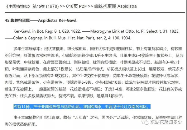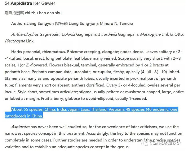 据统计,《中国植物志》在1978年出版百合科时,蜘蛛抱蛋属在中国只记载了8个种,2000年《Flora of China》Vol. 24出版时,特别提到,蜘蛛抱蛋从来没有被很好地研究过,进一步的研究非常必要,以了解精确的物种变异,并最终在属范围内建立一个适当的物种概念。《Flora of China》关于国产蜘蛛抱蛋属植物记载直接飙升到了49种(其中中国特有种46种!),整整是原来的6倍多!至FOC以后,蜘蛛抱蛋属植物仍然在不断被发表,这种属内物种激增的速度,在世界植物范围来看,恐怕也是绝无仅有的了,蜘蛛抱蛋属植物是何等的奇葩!