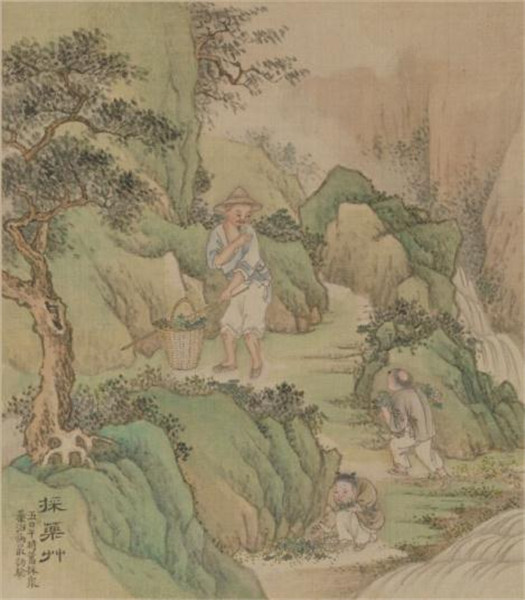 《太平欢乐图》册之《采艾》 清 董棨绘(图片来源于故宫博物院)