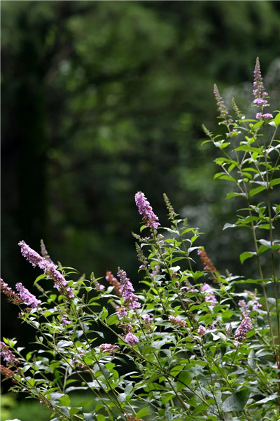 大叶醉鱼草目前正值花期,紫色的花儿在视觉上带给人们清凉感,花儿吸引着许多昆虫蝴蝶前来取食花蜜花粉,不时可见到振翅穿梭于花丛中的小身影们,好一幅生动的花开蝶来的夏日画卷。