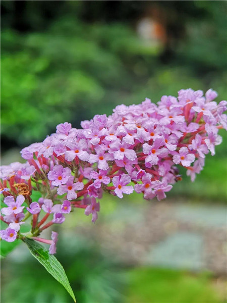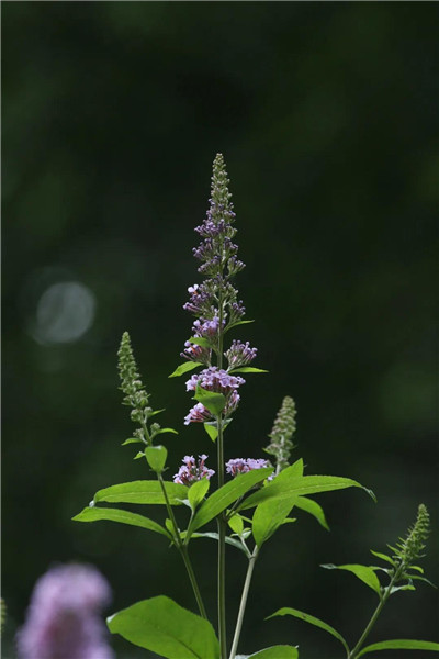 作为小灌木,大叶醉鱼草可与乔木、草本花卉共同构成错落有致的美丽图景。长长的枝条看起来自由舒展,柔软多姿,枝条的前端是由众多紫色小花组成的总状或圆锥状聚伞花序。