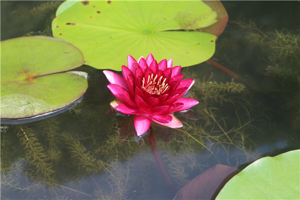 睡莲,是水生花卉中的名贵花卉,因花朵色彩丰富,婀娜多姿,具有朝开晚合,“会睡觉”的特性,被人们亲切的称为水中睡美人。