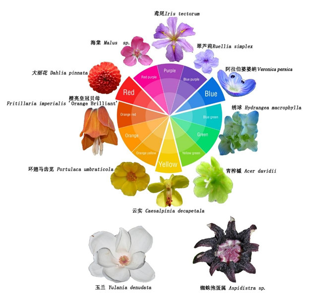 自然界被子植物的花多彩多样,有红橙黄绿青蓝紫及各种渐变状态的颜色,几乎覆盖了人类视觉的全部色系。