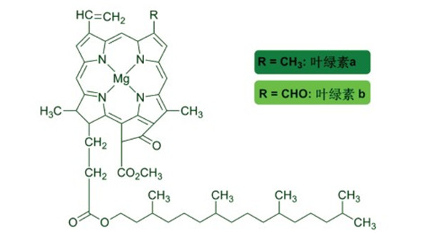 图11 叶绿素结构,是绿色的主要色素,也是生成花青素的前体。