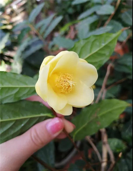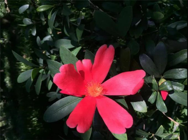 因其花似山茶叶像杜鹃而得名,有着“植物界大熊猫”之称,一度曾濒临灭绝,属国家一级保护植物,其分布地区极窄,原只在阳春境内有零星分布,野生数量极少。花期也非常的特别,与大多数山茶不同,她是在5月始花,6-9月左右盛花,因此是夏日也能绽放的珍稀品种。