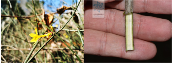 图1:迎春花的单朵花(摄影:曹承娥)图2:迎春花枝条切面(图片:中国植物图像库)