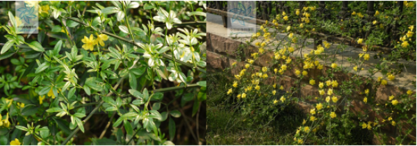 图1:野迎春的叶 图2:野迎春的植株(图片:中国植物图像库)