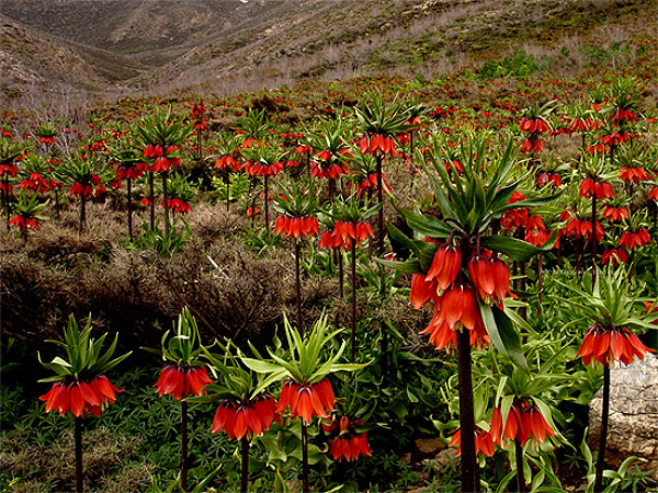 春季盛花期的冠花贝母在其原生地绝对是一幅壮丽的景色。几天之内,一米高的干顶上的燃烧着的红铃铺满了山间贫瘠的坡,这给圣经·新约中的一句话带来了全新的维度:你们为什么为衣服操心呢?试想田野里的百合花是如何生长的它也不辛苦劳作,也不纺线织布;可是我告诉你们:甚至连所罗门在他荣耀极盛之时所穿戴的,也比不上花中的任何一朵”这句话正合这朵花的欧洲名字Imperial crown(皇冠)”荒野中的盛放的花朵胜过所罗门的所有财富