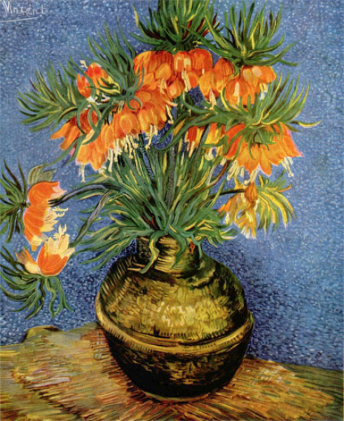 梵高笔下的冠花贝母 Van Gogh: Imperial crowns in a brass vase, 1886 图源:Bing