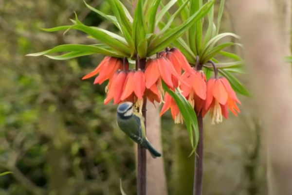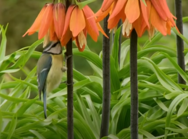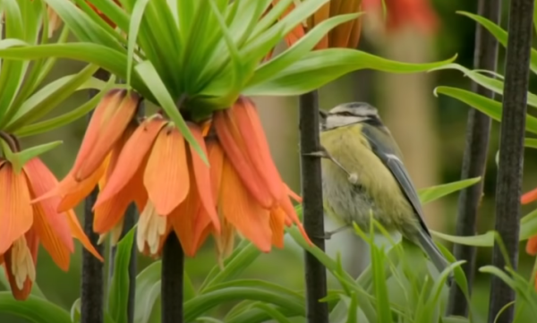 访花的亚欧蓝山雀 图源:Gardener's World 2021 Episode 5