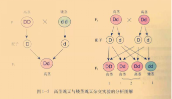 高茎豌豆与矮茎豌豆杂交实验的分析图解 图片来源于书籍:生物2(人民教育出版社)