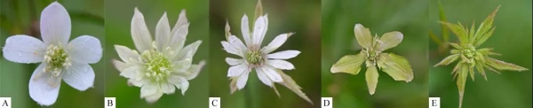 小花草玉梅的正常型(A)和几种变异类型 图@参考文献1