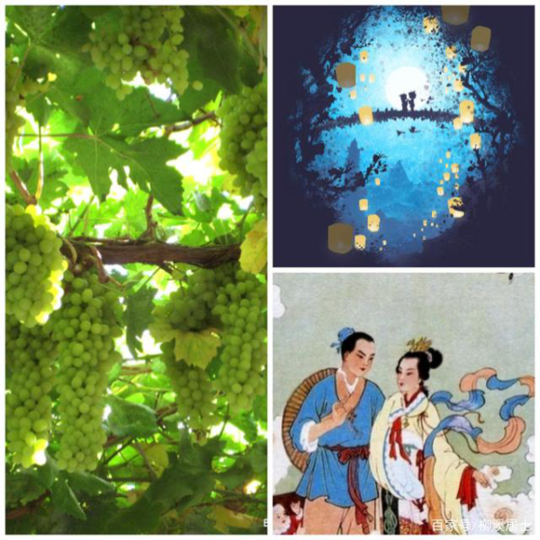 七夕节的产生是源于古时人民的星辰崇拜,两汉之前七夕的时间尚未确定,两汉时期,七夕确定为七月七日,之后,七夕更加盛行最终趋向成熟,成为了重要的传统节日。而汉代我国已经开始了葡萄栽培,为啥强调葡萄栽培呢?因为野生的葡萄没有葡萄架,如果要在葡萄架下夜听天河,那意味着葡萄是人工栽培的。我国本土虽然有野生葡萄,但栽培葡萄是成功引进的外来作物,约在夏商时代经中亚传入新疆。葡萄栽培有文字记载的最早时间是见于司马相如的《上林赋》,即西汉武帝建元四年(前137年)以前。也就是说,在七夕的起始时期汉代我国就已经开始葡萄栽培了,七夕和葡萄也就有了相遇的历史条件。