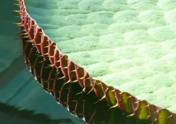 这么大的叶子在水中着实显眼,被小鱼或者其他小动物啃破了该怎么办?不用担心,王莲的叶子背面布满了尖锐刚硬的利刺,小动物们可不敢轻易啃食哩。