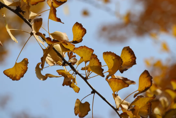 银杏(Ginkgo biloba L.)为中生代孑遗树种,是我国特产的珍贵树种。银杏以优美的树形,清奇的风骨,较高的观赏价值而受到世人的钟爱和青睐。唐代诗人王维曾作诗咏曰:“文杏栽为梁,香茅结为宇,不知栋里云,去做人间雨”。宋代大诗词家苏东坡有诗赞曰:“四壁峰山,满目清秀如画。一树擎天,圈圈点点文章。”银杏的美丽在秋天尤其摄人心魄,一枚枚扇形小叶,换上金黄的新装,纯净又热烈,在阳光下是那么的璀璨亮丽。