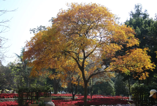 鸡爪槭可以说是秋景的主要构成树种,也是庭院造景的常用树种,其叶形独特,掌状叶通常5-9裂,形如鸡爪,因此得名鸡爪槭。秋季,鸡爪槭叶片变为红色,再加上树姿婆娑优美,十分美丽。
