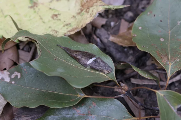 顺路前行,就到了本草园。一颗扁扁的杜仲果实正飘飞在肩上。