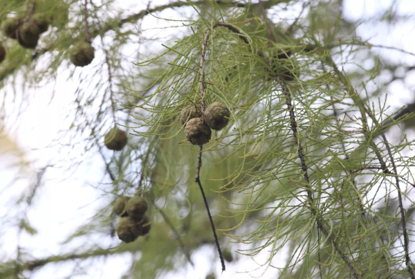 跟水杉最易混淆的就是池杉了,虽然之差一个字,但球果形态差异非常明显。
