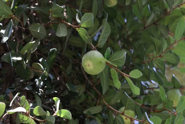 走出本草园,稍不留意就会忽略路边的灌木。春花秋实,这一路的杜鹃灌木丛,春天里,花朵绽放时红彤彤的一片,非常抢眼。倒是结果时期,显得有些落寞了,果实淹没在了树丛中。