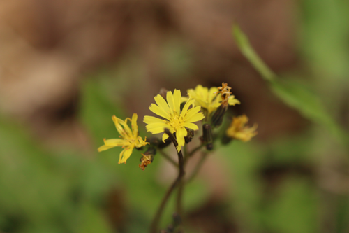 和菊科家族的其他成员一样,黄鹌菜的花也不是一朵花,是由许多小花聚集成一个头状花序,这些头状花序又聚集成了一个大的伞状花序。每一朵黄色小花都呈舌状,花冠管外面还长有短短的小柔毛。果实是褐色的纺锤形瘦果,风一吹,白色绒毛随风飘散,小种子便开始寻找自己的新家,在合适的环境里生根发芽,开始新的生命旅程。