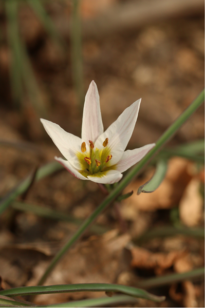 老鸦瓣曾被划分在郁金香属,被认为是郁金香的祖先,后来经过植物学家们反复考证和研究,发现老鸦瓣和真正的郁金香在形态上有明显区别。开花时郁金香的花梗伸出较长,靠近花的地方是一截光秃秃的秆,而老鸦瓣的花梗上靠近花的位置,会有2-4枚对生或轮生的苞片。苞片是叶变态的一种典型现象,也是作为植物科属分类的重要特征之一。