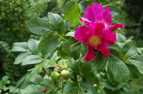 玫瑰 Rosa rugosa,其平淡无奇的花朵和多刺的茎干使其作为鲜花送人基本无无望