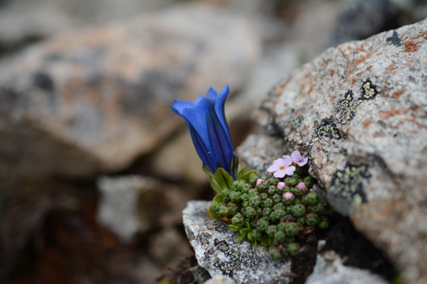 龙胆属植物的身影出现在高原的各种生境中,高山草甸、灌丛中、沼泽湿地、甚至高山流石滩上都能发现它们。尽管高原上的龙胆属植物大多较为矮小,但它们的花朵却形态优雅美妙,颜色清新怡人。或蓝或白的花儿绽放时,为青藏高原增添了一份神秘的烂漫,惊艳了时光。