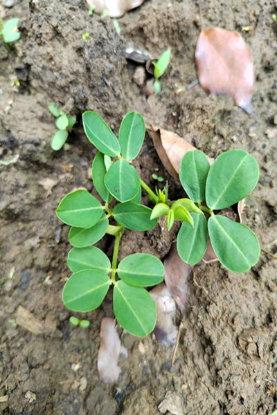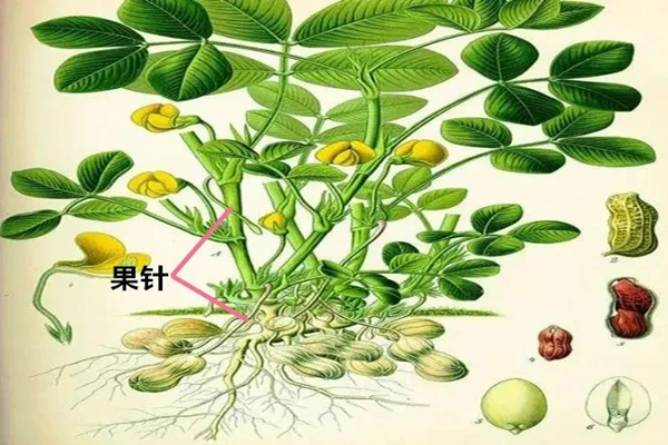 陆地上的植物,通常情况是地上开花地上结果,而落花生则是少有的地上开花地下结果的植物。落花生是如何实现入地结果的呢?这是因为落花生有一个特殊的装备——“果针”。原来落花生的花受精后,子房基部的组织会迅速分化,向下生长为长长的子房柄,小小的、鼓鼓的子房则置于子房柄的顶端,整体看上去,特别像缝衣服用的大头针,故而子房柄和子房被合称为“果针”。果针在生长过程向下不断伸长,直到接触地面后,就伸入泥土中,让子房在黑暗的环境里,不断膨大,发育成果实。