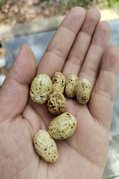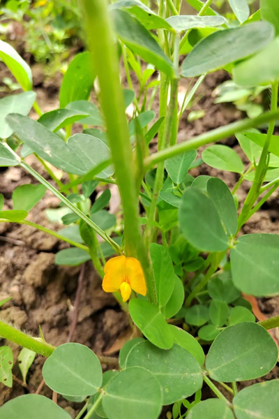 花生是落花生(Arachis hypogaea L.)的通俗名称,又名长生果、地豆、番豆,是豆科落花生属的一年生草本植物,适宜生长在气候温暖,生长季节较长,雨量适中的沙质土地区,在我国,以山东为最佳产地。跟豆科家族里的成员一样,花生的根部有丰富的根瘤,定居在内的根瘤菌与其互惠互利,共同生存。花生提供的矿物养料和能源供根瘤菌生长;根瘤菌则通过固定大气中游离的氮气,为花生生长提供氮素养料。开花时,金黄色的花朵像一只只展翅欲飞的蝴蝶,掩映在一片碧绿的叶片之中。果实为荚果,膨大厚实的果荚里包裹着好吃的种子。