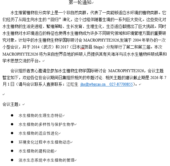 第四届水生植物生物学国际研讨会