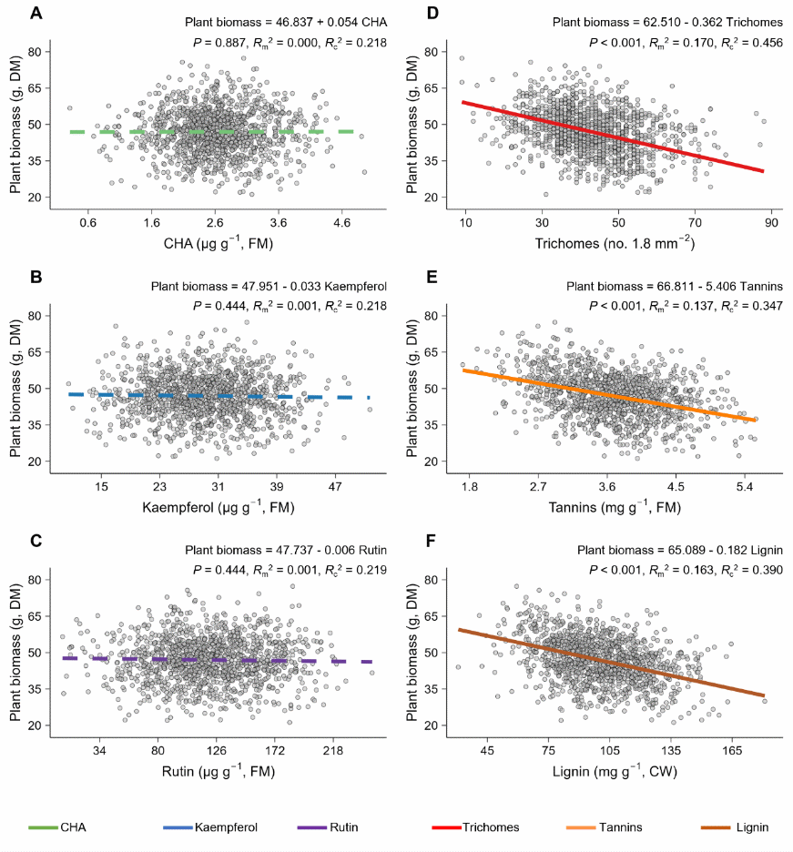 - 成本核算:豚草的物理防御(如毛状体)以及大分子量防御化合物(如木质素)比小分子化合物(如绿原酸)具有更高的生产成本(图2)。