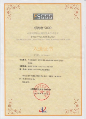 “领跑者5000——中国精品期刊顶尖学术论文平台(F5000)”是由中国科学技术信息研究所按照一定的评价指标,在中国精品科技期刊2007-2011年所刊载的论文中遴选的优秀学术论文,旨在进一步推动我国科技期刊的发展,提高整体水平,更好地宣传我国的优秀学术成果。该平台通过与国外大型出版链接的方式,将中国的优秀论文推送出去,同时也为优秀期刊和论文作者提供一个交流和合作的平台。