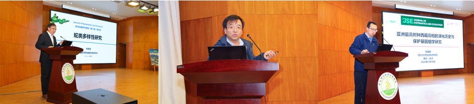 年会期间,Journal of Systematics and Evolution(JSE)喜马拉雅系列专辑(第 2 辑)发布会暨期刊发展座谈会在我园成功举办,为学术成果传播转化与期刊高质量建设搭建了重要交流平台。在专辑学术报告与期刊发展座谈环节,中国科学院成都生物研究所李家堂研究员、水生生物研究所何德奎研究员、四川大学毛康珊教授分别以 “蛇类多样性演化”“鱼类对东喜马拉雅河流演化的记忆”“亚洲最高树种西藏高柏的演化历史与保护基因组学研究” 为题,分享了JSE 喜马拉雅系列专辑三大不同领域的最新科研成果,为在场听众带来了多元化学术启发。