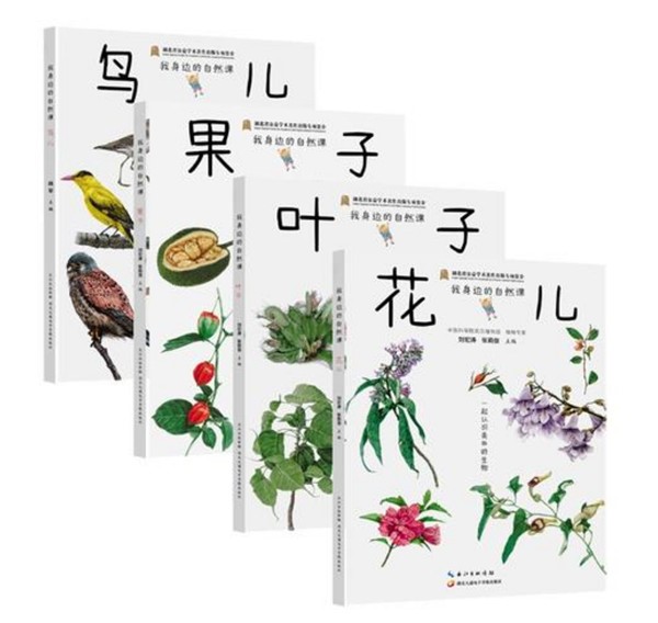 《我身边的自然课》作为一套专为中国儿童量身打造的精品自然科普读物,共分为花、草、果、鸟四卷,其中《花儿》《叶子》《果子》三册由武汉植物园副主任刘宏涛带领科普开放中心相关人员倾心创作。书籍以身边的花、草、果、鸟为主题,介绍了90余种常见的植物种类和30余种常见的鸟类,引导儿童观察认识常见生物,探寻自然界生物之间的相互关系,了解人类利用自然、改造自然、保护自然的活动,以提升儿童的观察能力、实验能力、形象思维能力和逻辑思维能力,鼓励儿童去亲近自然,热爱自然,保护自然,培养初步的环保意识。《我身边的自然课》曾获得2021年湖北省公益学术著作出版专项资金资助,也成功入选中国林学会组织评选的2023年自然教育优质书籍读本。