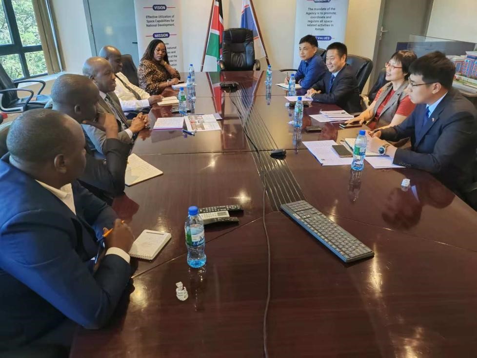 双方围绕遥感数据共享与能力建设等议题进行了深入交流。Hillary Kipkosgey少将对中-非中心正在推进的“东非水塔计划”表现出浓厚兴趣,并表示肯尼亚航天局愿意支持并参与相关工作,携手助力自然资源的管理和可持续利用。