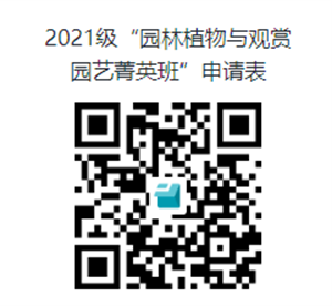 请有意向申请的学生,请于2023年9月17日前扫描以下二维码或点击链接提交个人信息,并提交《“园林植物与观赏园艺”菁英班申请表》签字扫描版,如需提交证明材料请与申请表合并为1个pdf,文件命名为“菁英班+姓名+年级+专业”。