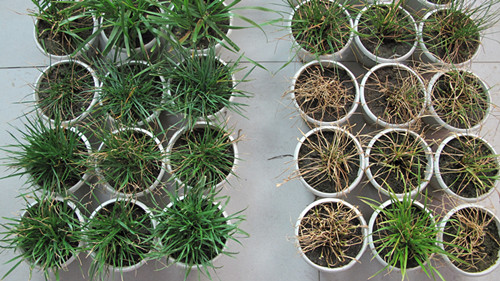中国科学院植物种质创新与特色农业重点实验室孙小艳博士在草坪种质资源学科组傅金民研究员指导和中国国家自然科学基金资助下,利用玻璃温室和控制生长箱,对120份来源世界不同地区的野生高羊茅种质材料抗高温性进行评价,发现在高温胁迫下,不同高羊茅材料的表型变异性丰富。通过主成分分析,建议“草坪表现因子”、“草坪产量因子”、“叶片水势因子”等3个因子可用于高羊茅抗热性评价,并建立两个数学回归方程对高羊茅耐热性能进行评估,获得5个耐高温高羊茅材料(PI 598574, PI608787, PI559374, Pure Gold and PI 527504),为今后培育高羊茅耐热新品种奠定了基础。