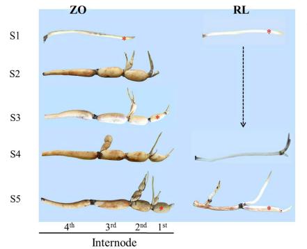 水生植物基因组学与遗传育种学科组杨美副研究员在杨平仿研究员的指导下,利用转录组测序技术深入分析了温带莲(ZO) 和热带莲(RL) 两个品种的地下茎在不同生长阶段的基因的表达。通过深入分析差异基因的表达情况,发现大量差异表达的基因属于碳水化合物代谢途径和植物激素信号传导途径。该研究结果为进一步揭示莲藕地下茎膨大机理奠定了坚实的基础,相关研究结果已在线发表于Scientific Reports 杂志。