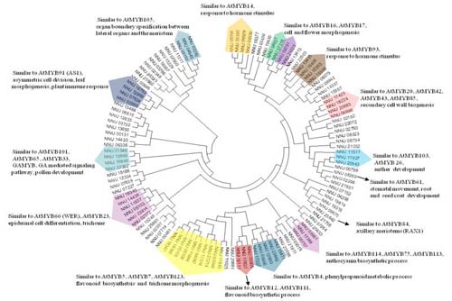 莲基因组中116个R2R3MYB基因与模式植物相应基因的系统进化分析