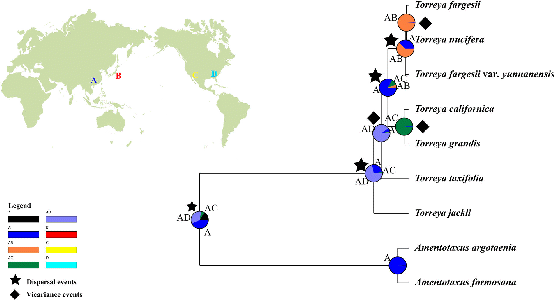 东亚北美间断的研究在极多的被子植物中开展。裸子植物由于起源较早,因此可能为探讨东亚北美植物区系的地理联系提供更好的案例。尽管以前也开展了榧树属的研究,但缺点是取样不全,且用以分析比较的都是基因片段。因此榧树属下的系统关系相对模糊。此次学科组在榧树属资源调查的基础上,全面取样,并采用叶绿体基因组证据,开展了该属系统基因组学和生物地理学研究。