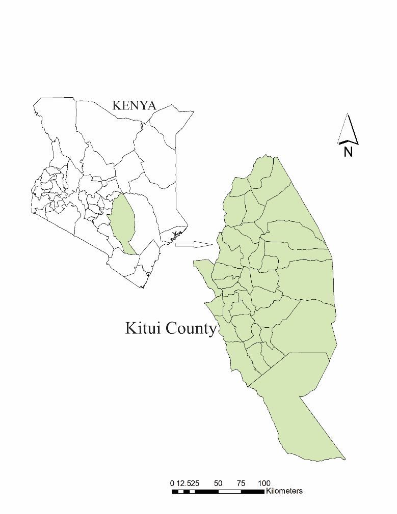 图1: 肯尼亚地图(显示Kitui县的位置)