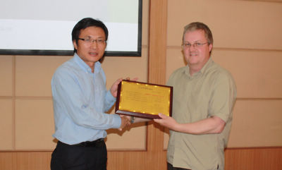 10月20日下午,新西兰植物和食品研究所首席科学家Andrew C. Allan受武汉植物园果树分子育种组首席研究员韩月彭的邀请,到武汉植物园进行了学术交流,并受聘为中科院武汉植物园客座教授。授聘仪式由韩月彭主持,武汉植物园副主任张全发为Andrew C. Allan颁发了聘书。
