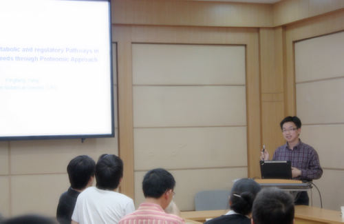 武汉植物园副主任张全发研究员指出,“青年科学家论坛”为武汉植物园各学科组间进行学术交流提供了良好的平台,希望广大青年科研人员及研究生积极支持并踊跃参加。青年学者杨平仿、魏新增、李惠英、卢新民及王伟波分别做了主题为“蛋白质组学研究”、“山地植物物种多样性与遗传多样性关系”、“黑麦草应对重金属胁迫的生理和基因表达响应”、“外来植物空心莲子草入侵机制及其治理”、“生物土壤结皮-容易被忽视的世界”的学术报告。