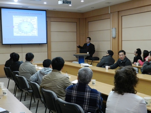 3月28日上午,应天然药物生物合成学科组章焰生研究员的邀请,华中农业大学植物科学技术学院赵剑教授到武汉植物园开展了学术交流活动并作了题为“Transport and transcriptional regulation of flavonoid biosynthesis in Medicago truncatula”的学术报告。
