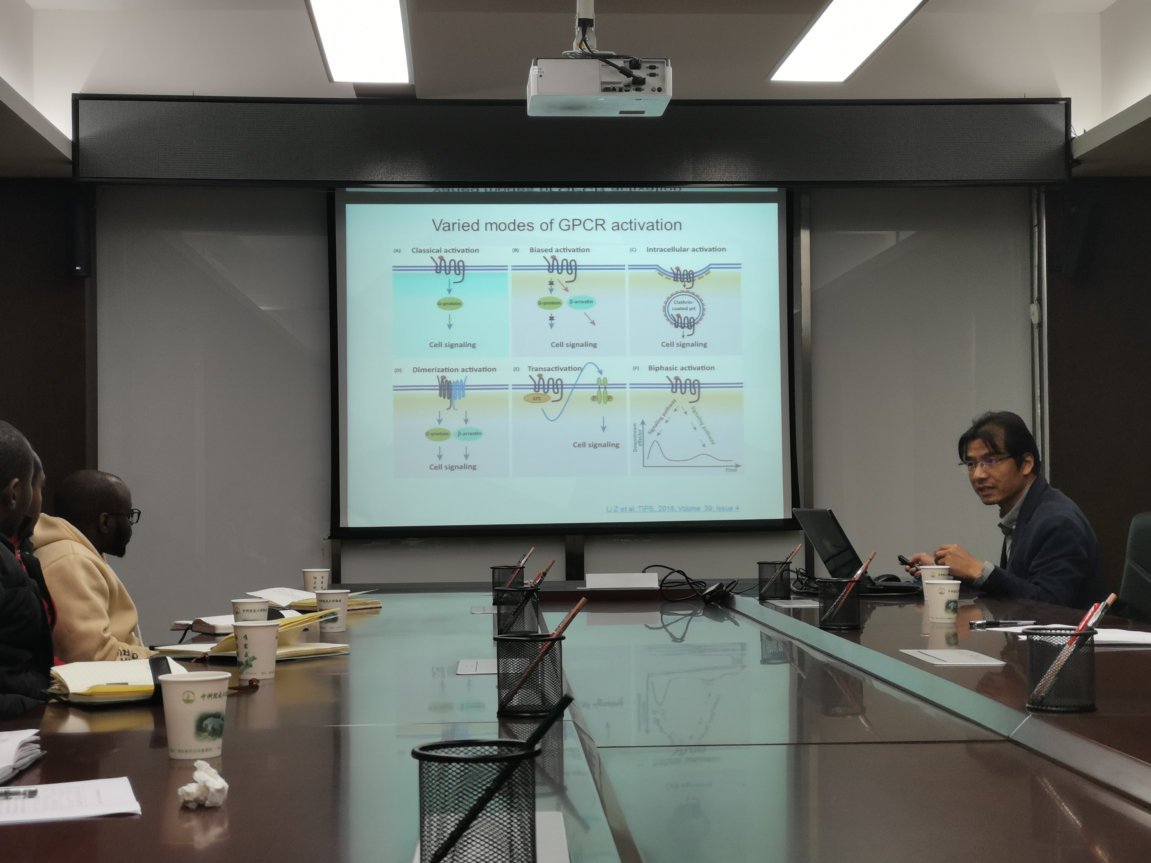 朱卫忠教授“β-arrestin 2 signaling of GPCR mediates the cardiac inflammation” 主题展开报告,从受体的研究历程到概念提出讲起,随后又给大家介绍了G蛋白偶联受体的不同活化方式,引出β-arrestin 2 这一GPCR的重要调节因子,其在GPCR脱敏、内化、复敏、细胞增殖反应和基因转录中都具有重要地位。随后,朱教授介绍了其课题组通过分子水平、细胞水平阐明了β-arrestin 2在心脏炎症反应中的重要功能和相关作用机理,为植物药物研究提供了新的实验思路和作用靶点。